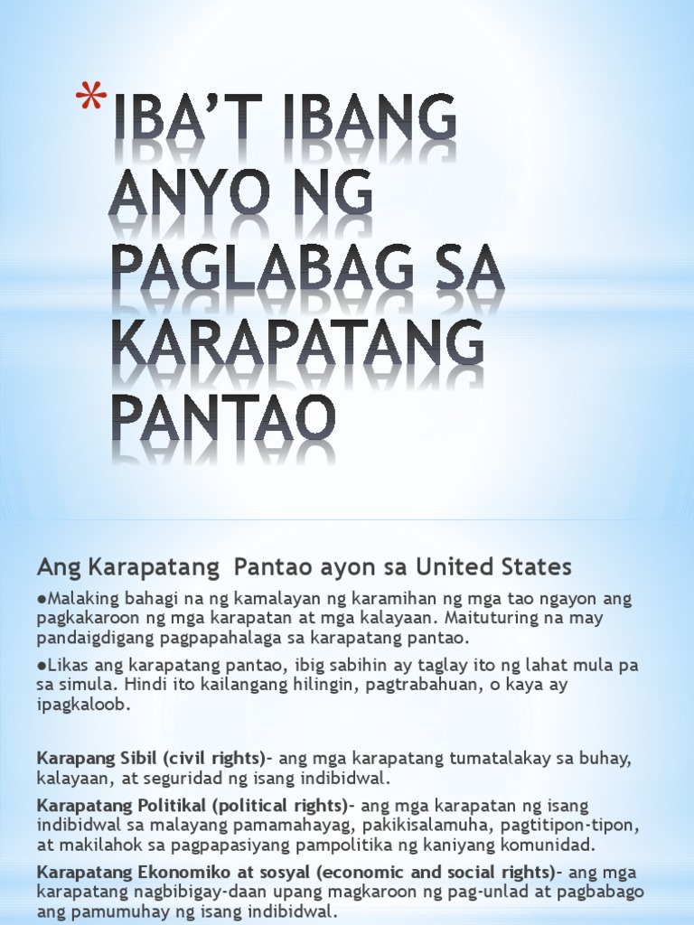 Iba T Ibang Anyo Ng Paglabag Sa Karapatang Pantao Pdf