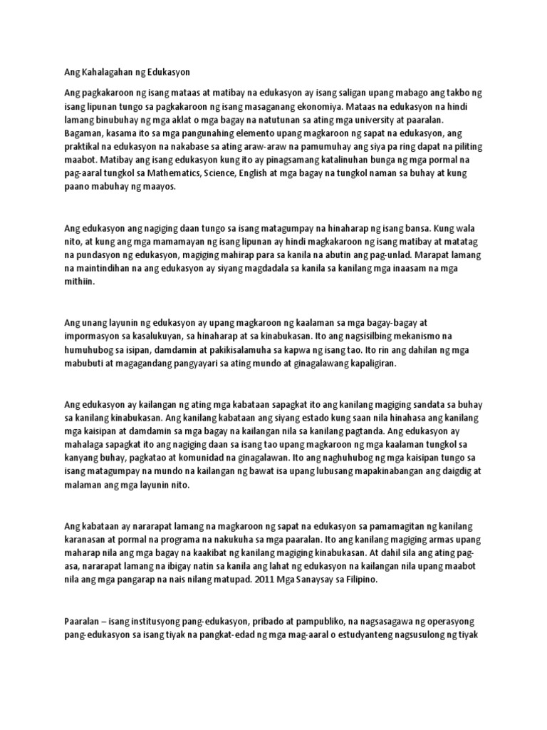 Mga Sanaysay Tungkol Sa Edukasyon 10 Sanaysay Pinoy Collection