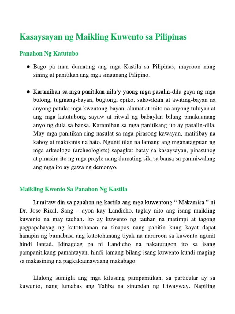 Kasaysayan Ng Maikling Kwento Pdf